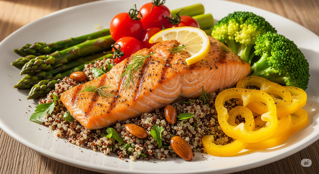 - Jantar: Prefira refeições mais leves para não atrapalhar o sono. Sopas de legumes, saladas com frango desfiado ou peixe grelhado são boas opções.