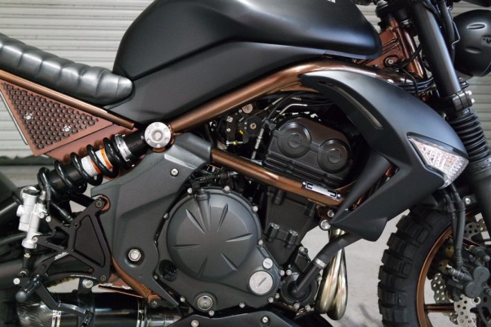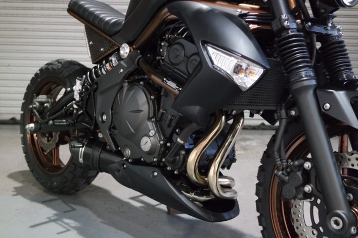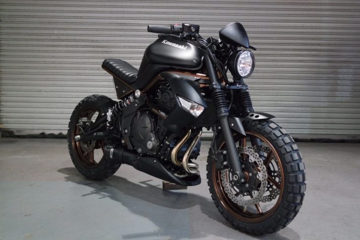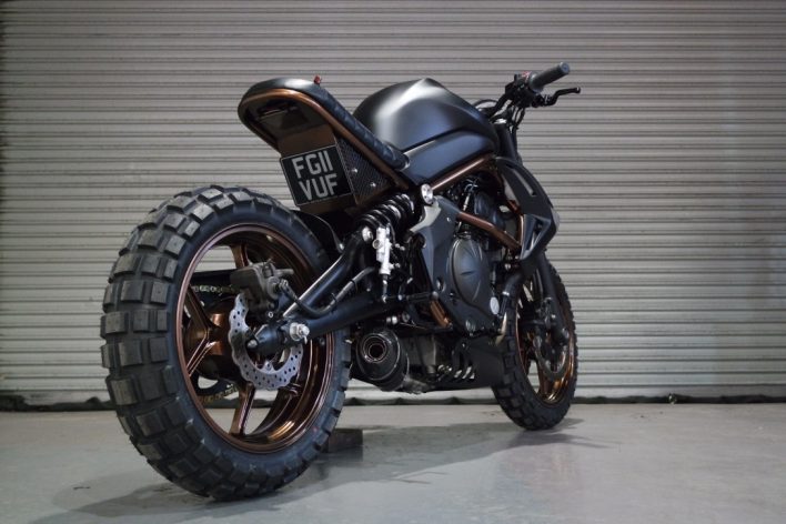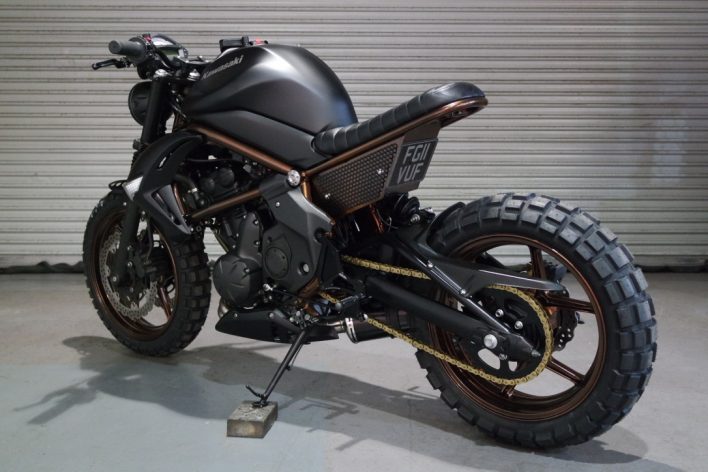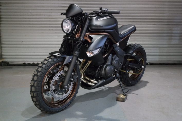 De visual futurista e ao mesmo tempo retrô, essa Kawasaki ER6-N Scrambler é um projeto da Kevils Speed Shop, uma empresa inglesa de customização.