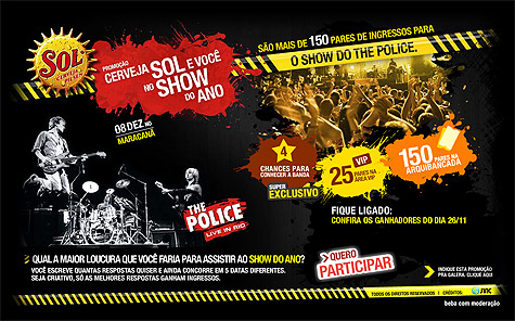 Marketing digitalPromoções Show do The Police | Cerveja Sol lança promoção em hotsite exclusivo 2 min para ler